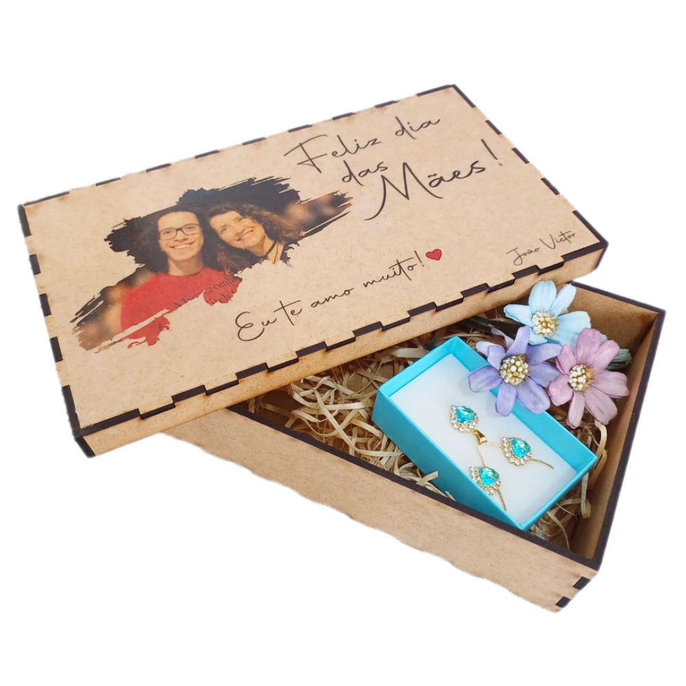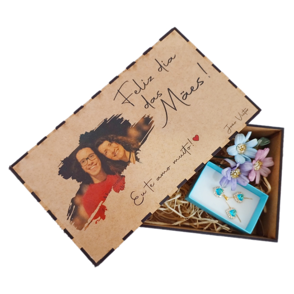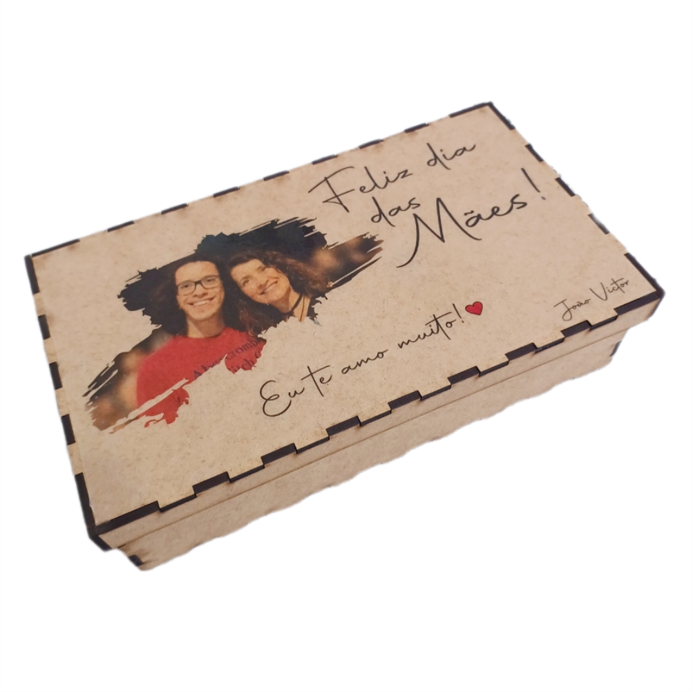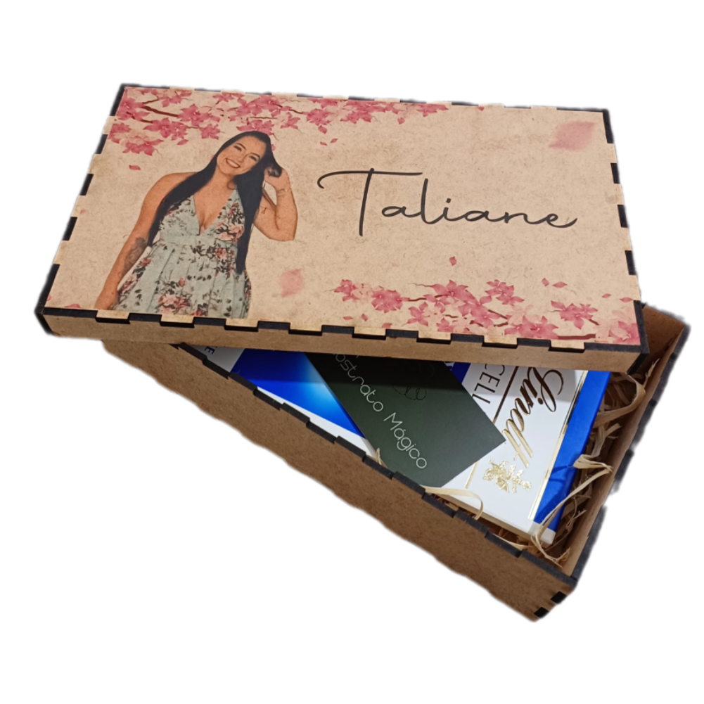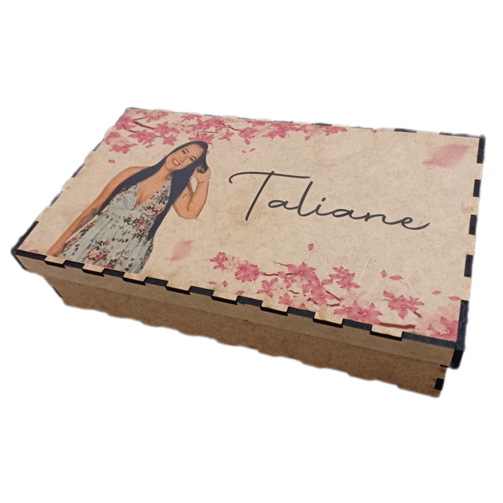 Caixa de MDF Retangular com Impressão na Tampa + 10 Fotos Impressas